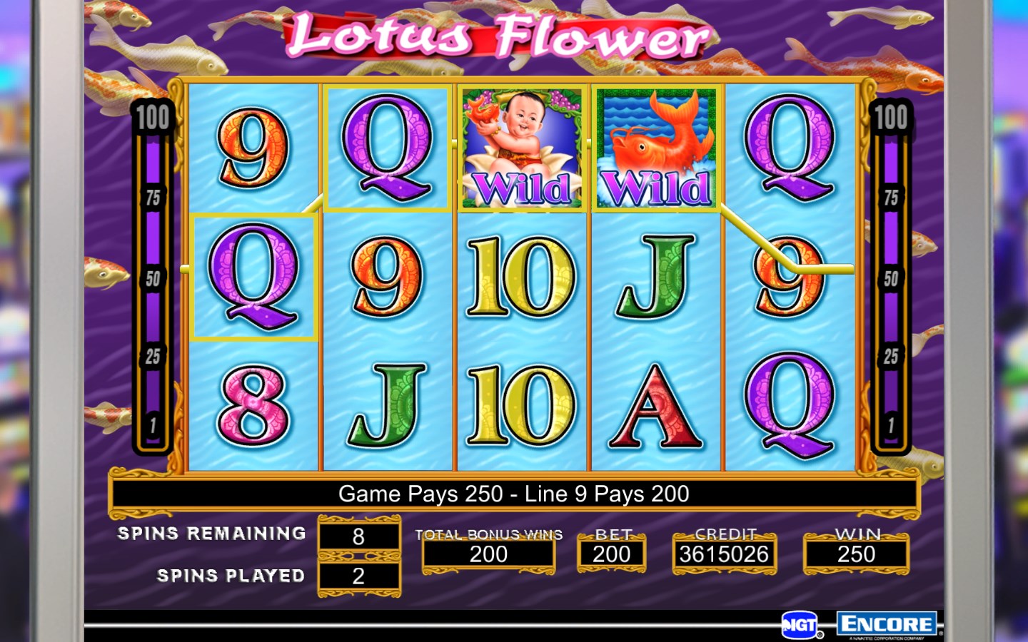 Lucky lines features authentic casino replicated slots machines actual slot sounds and graphics true casino payouts with extra payouts video bonus machines offer interactive features and bonus rounds 6 denominations. On the reels you will encounter the monarch butterfly a caterpillar zinnia flower sunflower gladiolus flower lotus flower and the standard playing cards running from 9 to ace. The lotus flower slot is an igt game. Play lotus flower free video slot game from igt without the need to register download or install anything.